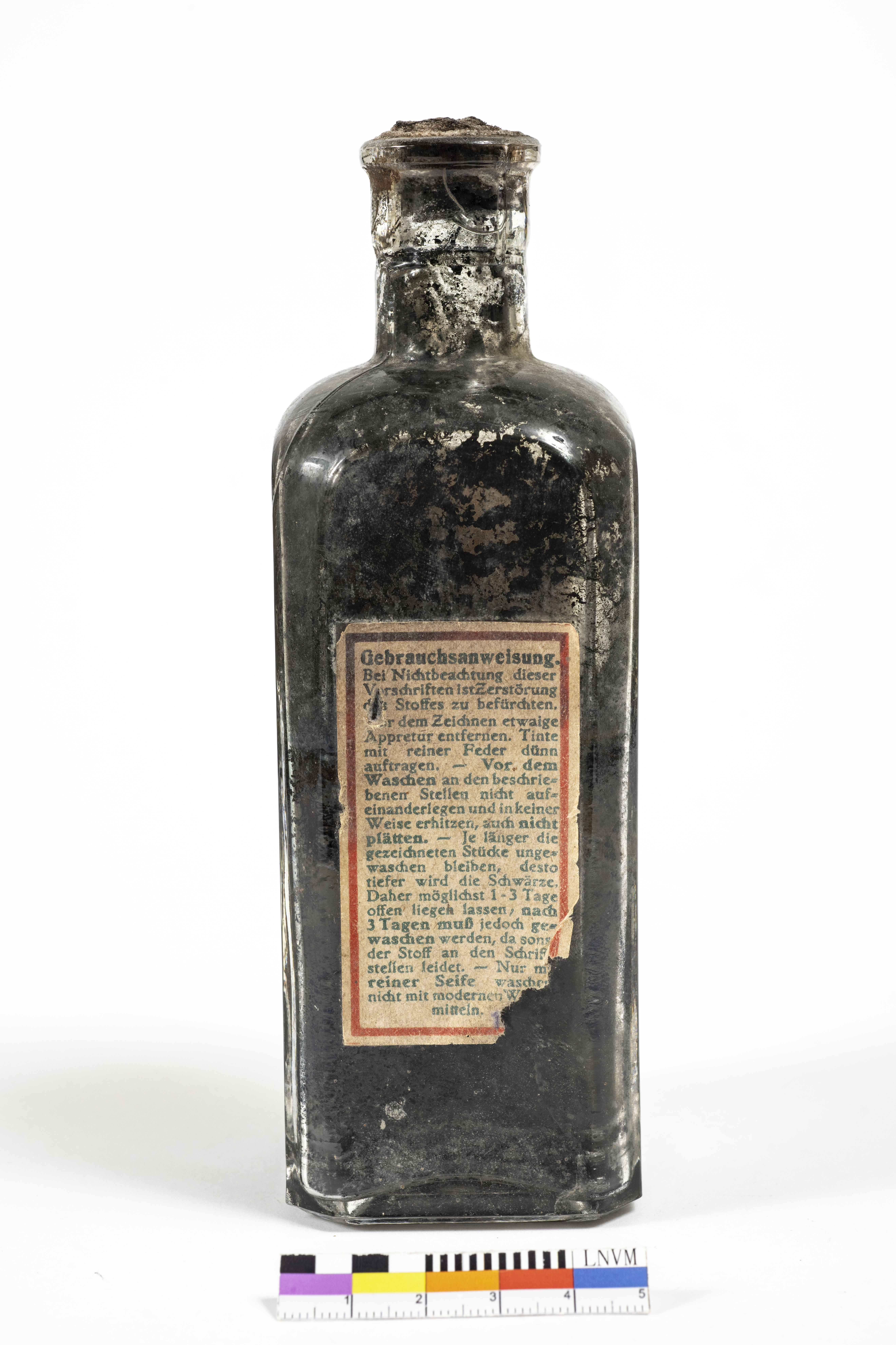 Pudelei: Pamatne ~5,5cm x 5,5 cm, h=16,2, ar korķi h=16,8 cm. Etiķetes: 1) 11,4 cm x 3,8 cm; 2) 6,3 cm x 3,6 cm.