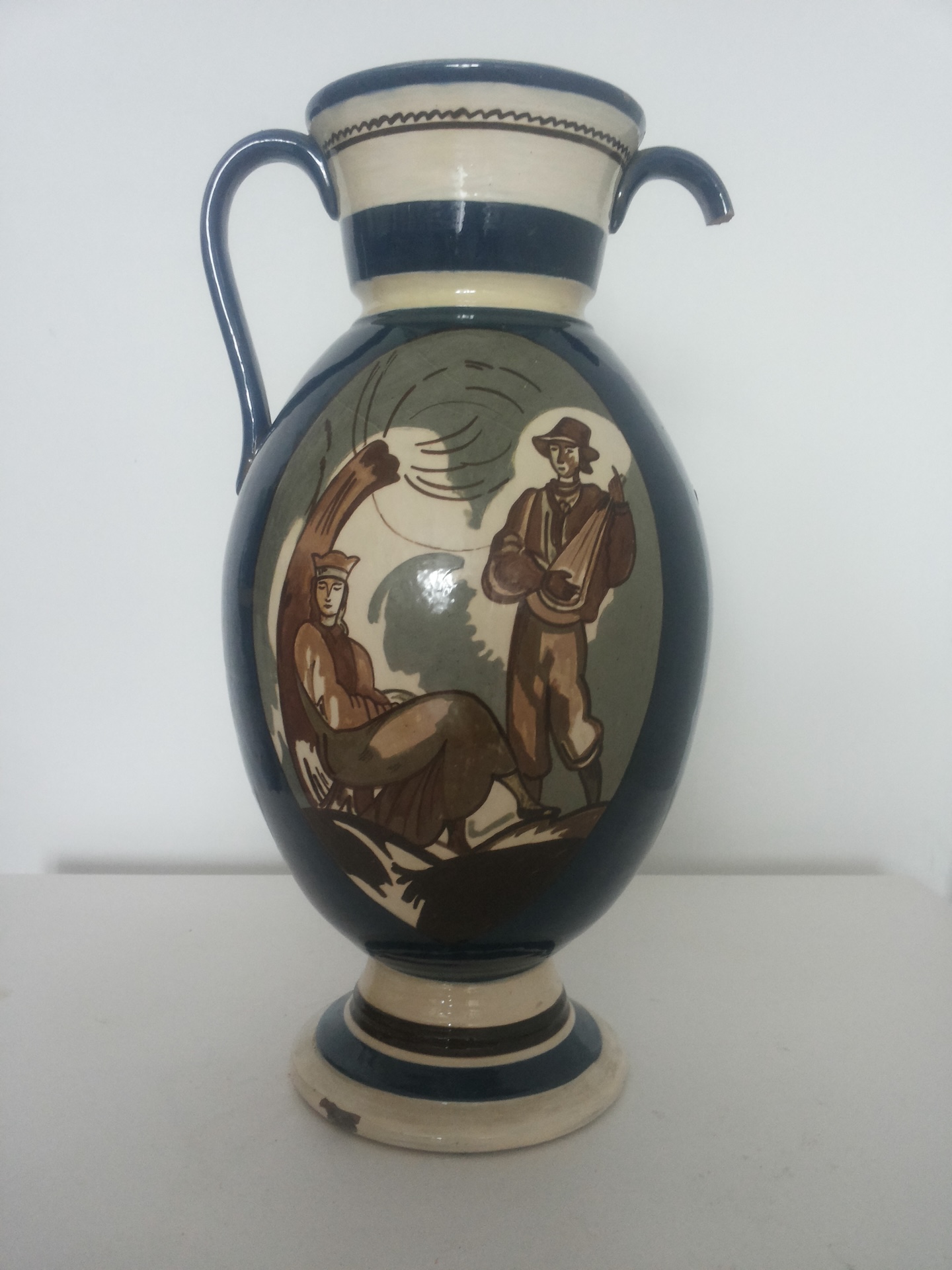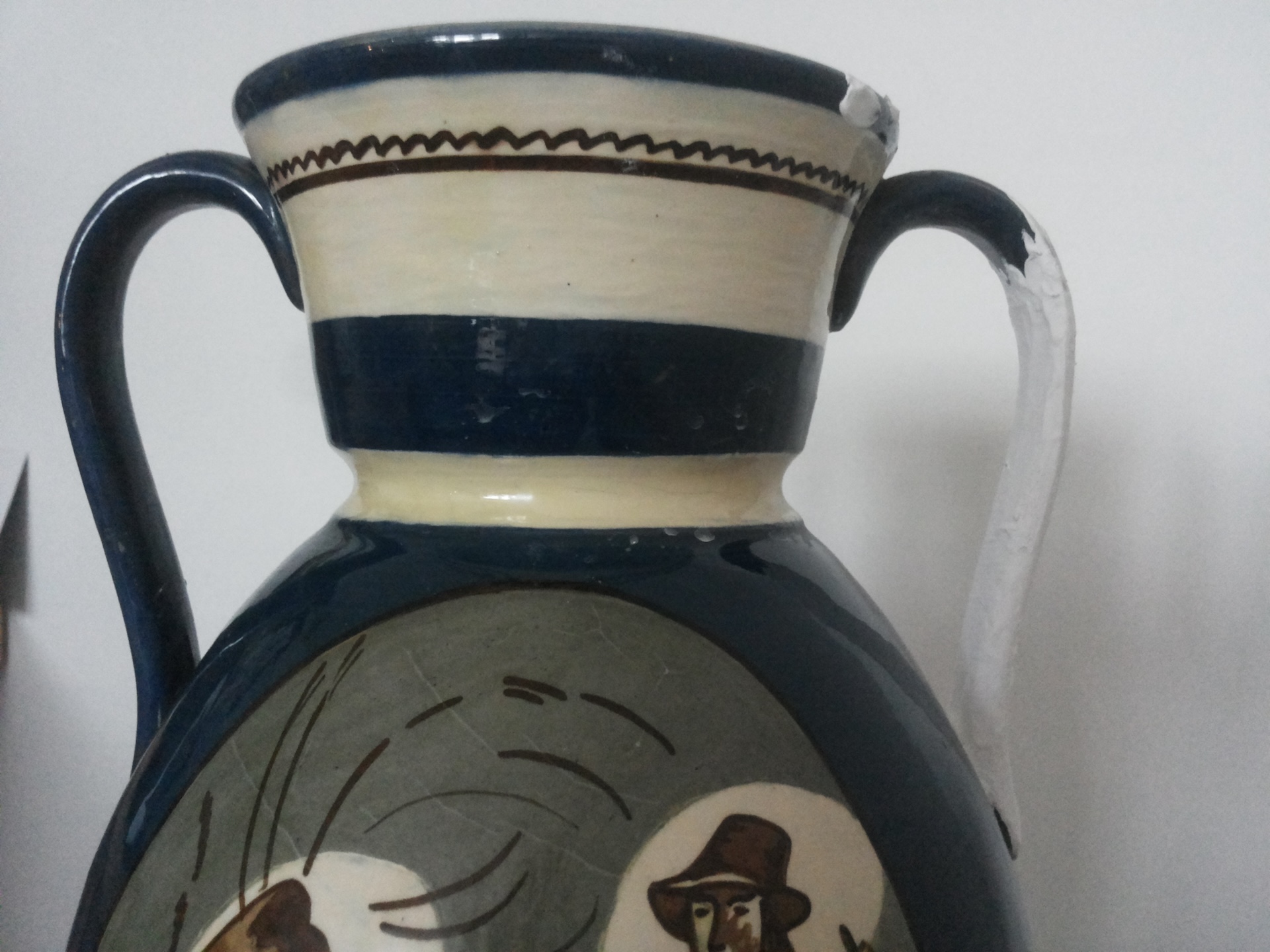 Māla vāze, virpota. Zemglazūras figurāls apgleznojums vienā pusē